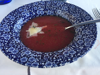 Monday, when we'd eaten breakfast and gotten ready, we headed to the beach! Anna was thrilled. She LOVES being in the water and has been missing her summer swimming. Cory and I started off with a run along the boardwalk. Barcelona isn't a "runner-friendly" place so we decided to take advantage of a straight, traffic-free running surface. It was so hot and humid that you could wring our clothes out by the end, but we got it done. We enjoyed the day splashing and floating in the salty Mediterranean, and ate a fancy seafood lunch at a restaurant on the beach. We all got sunburns of one degree or another, but there's nothing like the beach to lift everyone's spirits. Anna said it was her best day of the trip so far. Sun-burned, and sun-tired, we headed home to clean up and pack up.